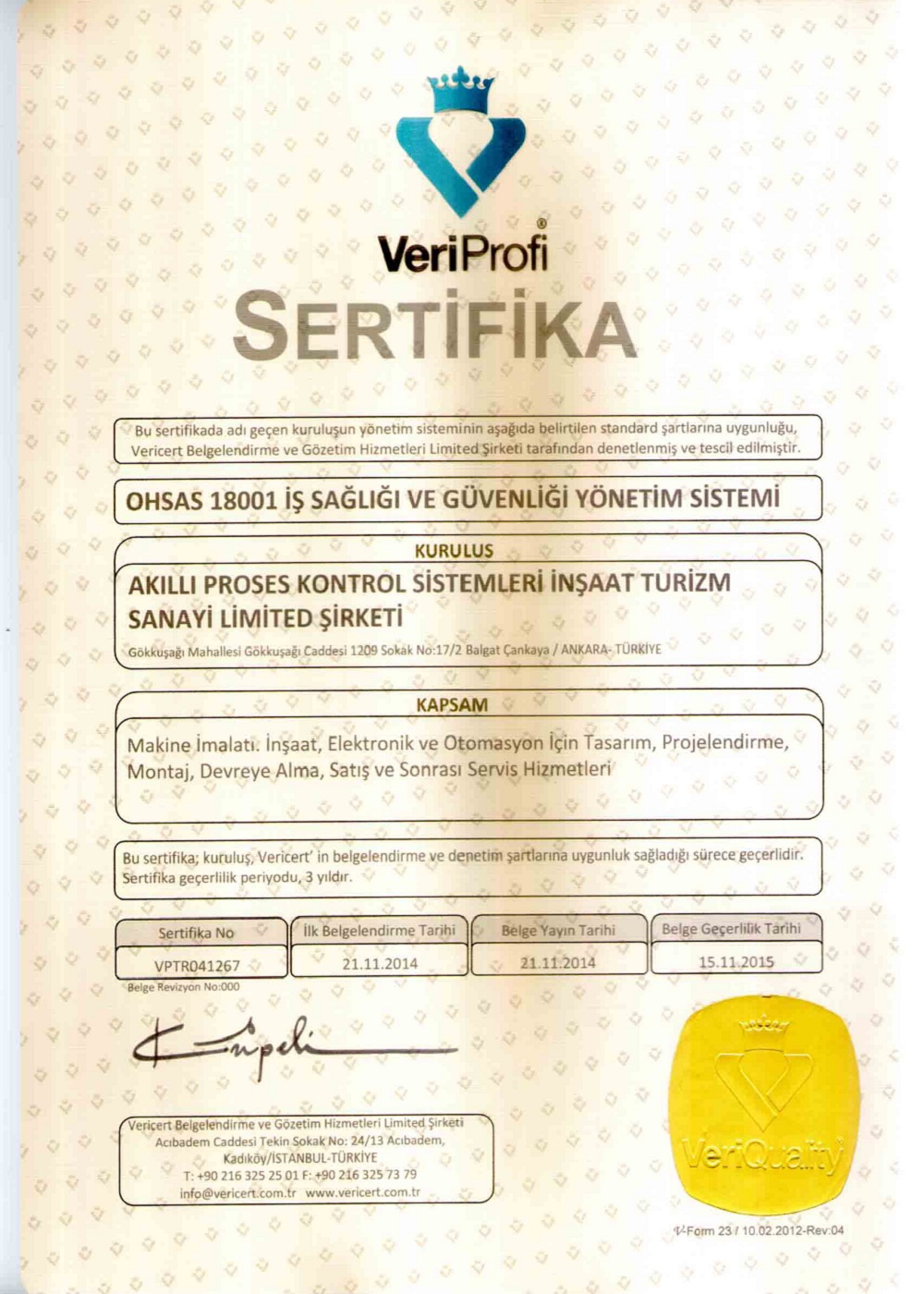 · Çalışanlarda İş Sağlığı ve Güvenliği bilinci oluşturmak ve uygun davranışları kazandırmak amacıyla Akıllı Proses Kontrol Sistemleri’ nde, İş Sağlığı ve Güvenliği Yönetim Sistemi çerçevesinde yürütülmektedir.