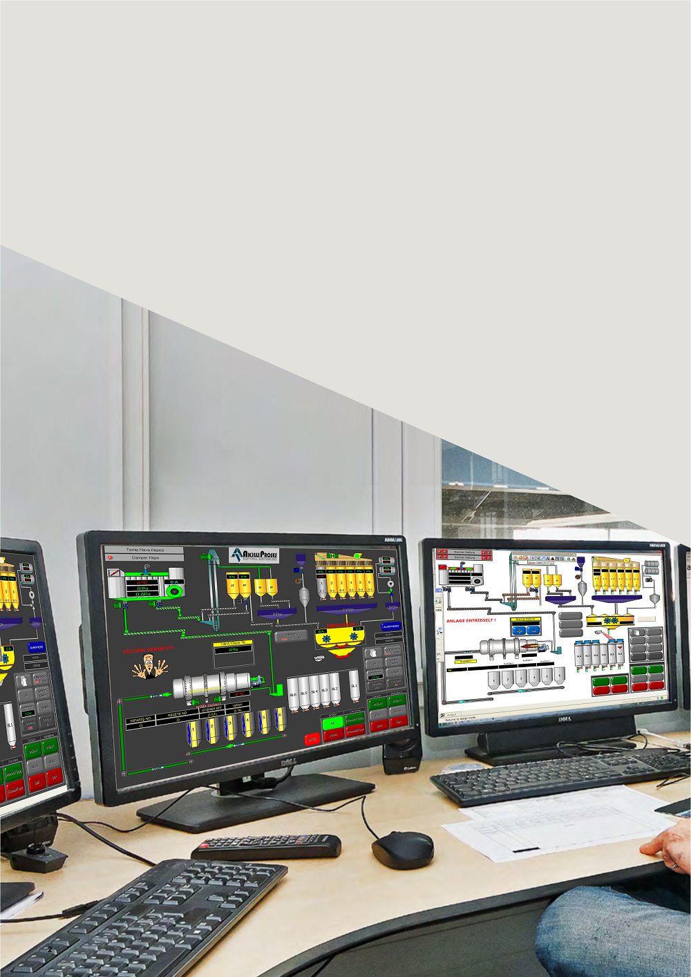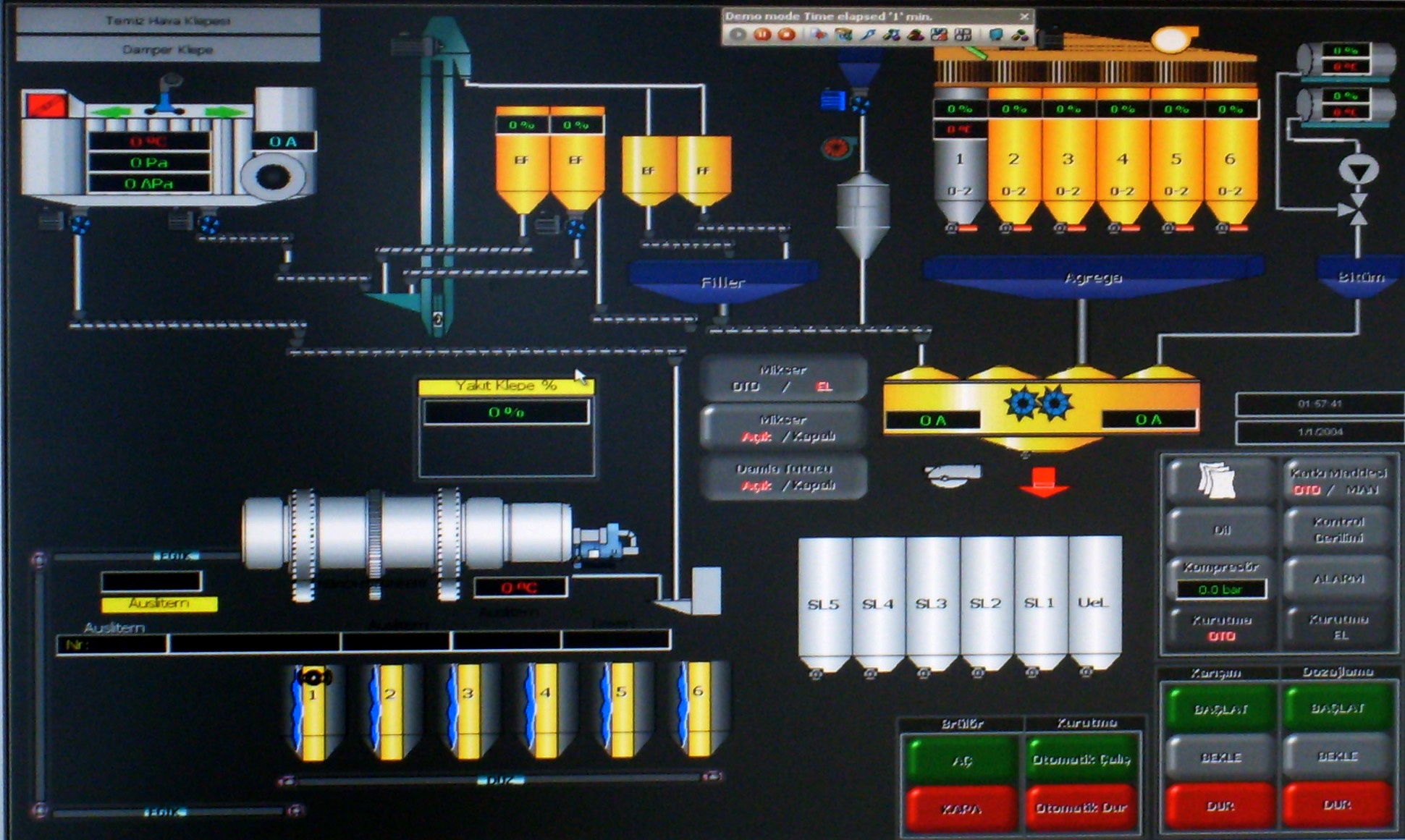 Asfalt proses kontrol sisteminin bütün operatif saha elemanları mouse ve klavye ile kontrol edilecek şekilde bilgisayar scada ekranı üzerinde grafiksel bir şekilde gösterilmektedir.